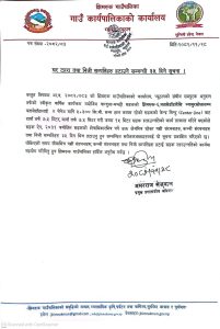 सडक निर्माणको क्रममा सडकको क्षेत्राधिकार भित्र ७.५ मिटर दाँया र ७.५ बाँया मा रहेका घर, टहरा तथा अन्य संरचना हटाउन गाउँपालिकाले ३५ दिने सुचना जारी गरेको हो । गाउँपालिकाले १५ मिटर सडक क्षेत्राधिकार भित्रका संरचना हटाउन आग्रह गरिएको गाउँपालिकाका प्रमुख प्रशासकिय अधिकृत अमरराज सेजुवालले जानकारी दिनुभयो ।